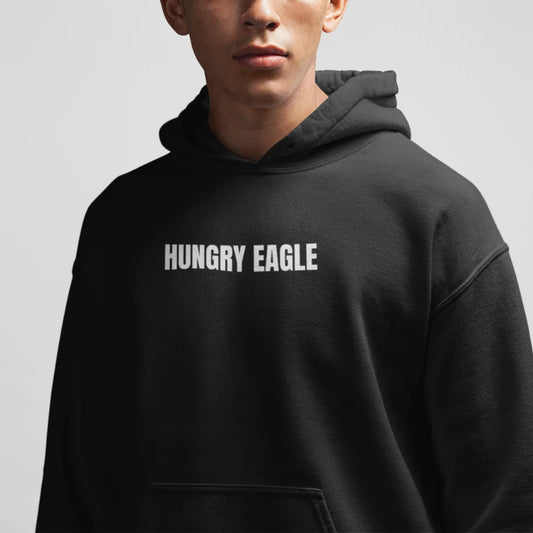 Black Gym Hoodie for Men - Hungry Eagle Oversized 400 GSM